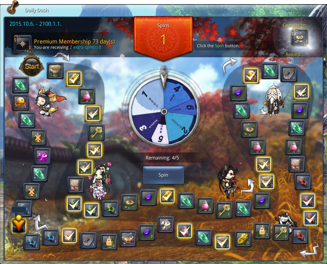 Als Premium-Nutzer kann man täglich mehrmals an diesem Minispiel teilnehmen, wobei man nach jedem Spiel wenigstens eine Stunde warten muss, bis man erneut daran teilnehmen kann. In obigem Bild seht ihr wie das Spiel ausseht und was man dort so alles gewinnen kann. Die Gewinne werden mit einem Haken markiert und euch direkt zugestellt. Abholen könnt ihr die Gegenstände dann jederzeit mit jedem beliebigen eurer Charakter. Das interessanteste Item dürfte sicherlich die Münze zum Umwandeln von Drachenperlen in Shopwährung sein. Dadurch könnt ihr euch mit 10 Drachenperlen (10 Silber) aus dem Premium-Shop zwischen ca. 125-500 Coins (je nach Münze) craften, welche ihr dann im Shop für Items ausgeben könnt. Aus diesem Grund (und weil man Premium nur mit NCoins kaufen kann) sollte man seine NCoins aus dem Gründerpaket - sofern man eins erworben hat - lieber (zumindest teilweise) in Premium investieren und sich dann über diese Coins die Items kaufen. Es gibt allerdings auch einige Gegenstände die sich ebenfalls nur mit NCoins kaufen lassen - wer die möchte, der muss sich ein paar seiner NCoins dafür aufheben.